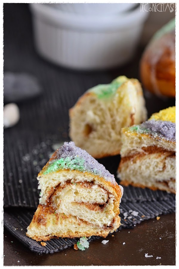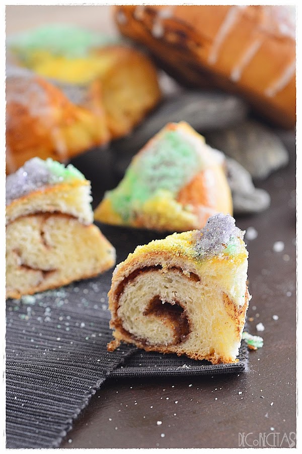 Se trata de un pastel típico de carnaval o de navidad según el país, habitualmente realizado con canela, trenzado en forma de rosco y que se carazteriza por tener esos colores de azúcar por encima. Se suele esconder dentro una muñequita de plástico