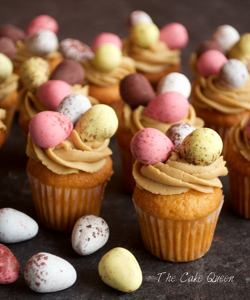 Las decoré con una crema muy suave de chocolate, y finalmente usé los ricos y preciosos huevos de chocolate con leche que me hicieron llegar la semana pasada Lacasitos, muchas gracias por los deliciosos huevos están para chuparse los dedos.