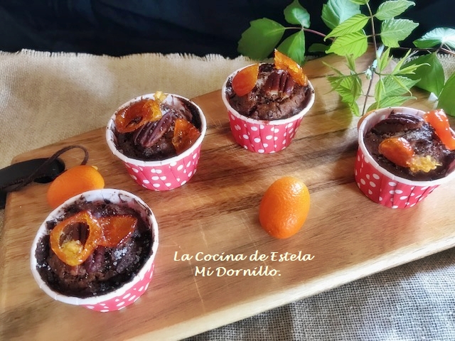 Este mes en el Reto tus recetas el ingrediente elegido es el cacao. Yo en realidad utilice chocolate negro para estas mini magdalenas, a las que acompañe de un dulce de kumquat, si, esas naranjitas pequeñas que también las llamamos naranjas chinas.