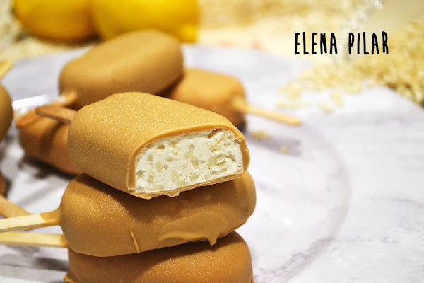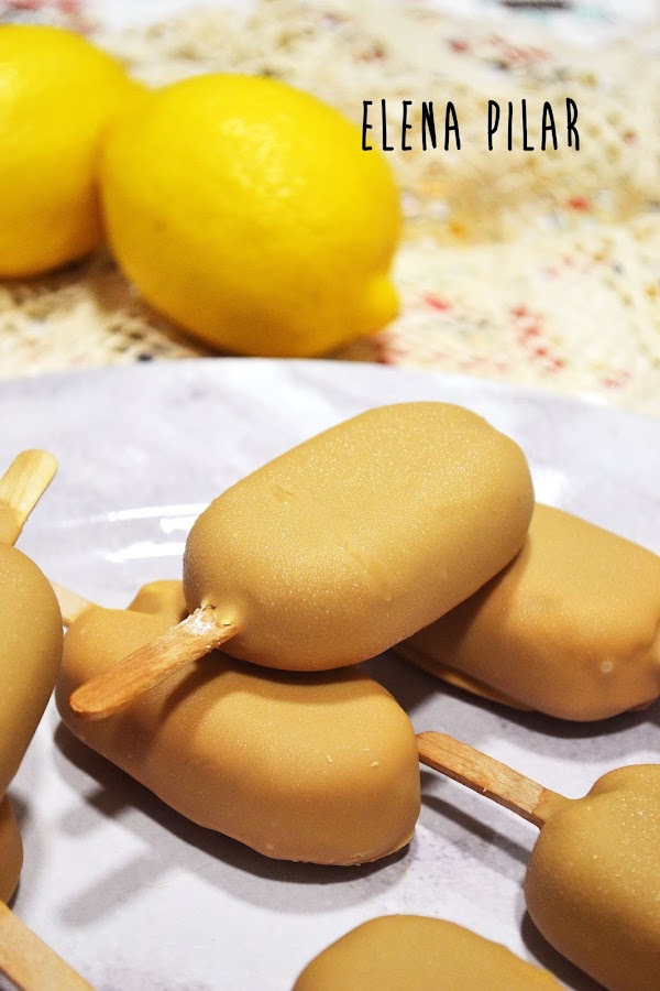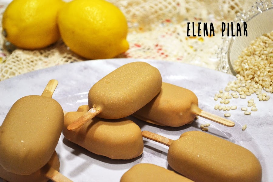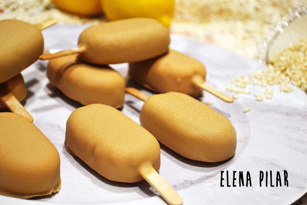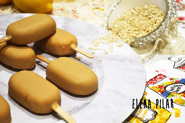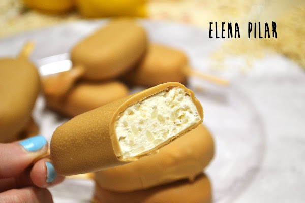 Unos polos inspirados en el sabor de este postre tradicional (confieso que la idea/reto me la propuso mi madre), con un interior cremoso y nada empalagoso y rematados con una cobertura de chocolate Gold. Sí, ese dulce chocolate que es de un precioso color dorado, tiene un tentador sabor a caramelo y está tan megadelicioso que me como los chips a puñaditos. En serio, los tengo que quitar de mi alcance más inmediato, o corro el serio peligro de ventilarme la bolsa en dos días.