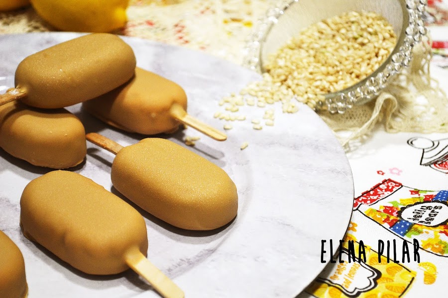 Dicho esto, no me enrollo más (tampoco tengo mucho más tiempo; además, quiero descansar un poquito esta tarde para continuar con todas las ganas con otra de mis semanas eternas, en las que los fines de semana brillan por su ausencia), y os dejo con lo verdaderamente importante hoy: la recetaza de mis mini magnums de arroz con leche con cobertura de chocolate Gold.