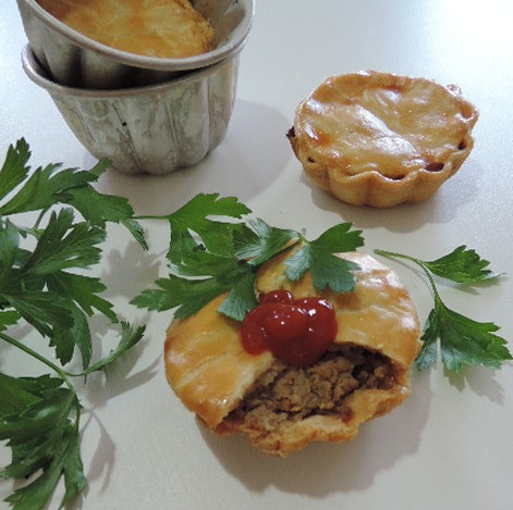 A me toco cocinar un pastel de carne plato típico de la cocina australiana que propuso Patricia de El tragu de la galletas".Aquí mi pastel de carne en versión mini.