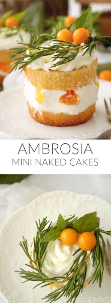 La tarta ambrosía es un bizcocho de vainilla que lleva en el relleno chantilly con mandarina, piña y luego va cubierta con coco rallado. Como en casa no somos mucho de coco, lo quité. La verdad es que he visto que hay un postre brasileño y argentino que se llama ambrosía, pero no tiene nada que ver. Más bien tiene que ver con la ensalada de frutas ambrosía, típica del sur de los Estados Unidos y que normalmente se toma para Acción de Gracias o Navidad. Lo que sí os aseguro es que como su nombre indica: es manjar de dioses.