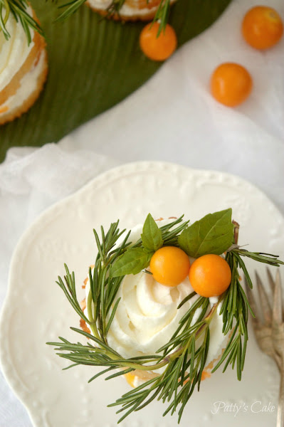 Hacemos un círculo con la ramita de romero y lo ponemos encima del pastelito.