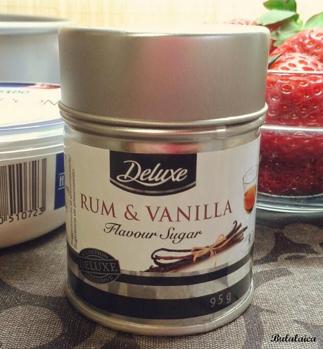 Puede ser azúcar glas normal, pero en esta ocasión yo hice una mezcla con un poco de normal y con otro poco de esta maravilla a la vainilla y ron!