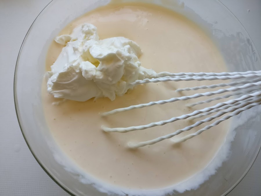 A continuación añadimos los yogures y batimos hasta crear una crema ligera.
