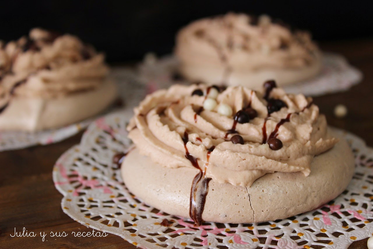 Es apta para celiacos, pues no lleva ningún tipo de harina. Es un merengue que se pone de base y una vez relleno y decorado queda muy elegante y que resulta un placer para la vista y el paladar.