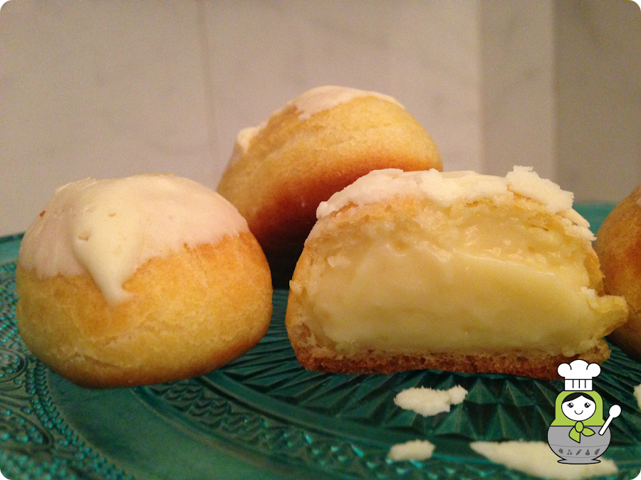 Por último, cubrimos la parte superior con chocolate blanco o bien con glasa real, como hemos hecho nosotras en esta ocasión. ¡Et voilà les petits choux! ¿Quién se va a resistir a estos bocados?