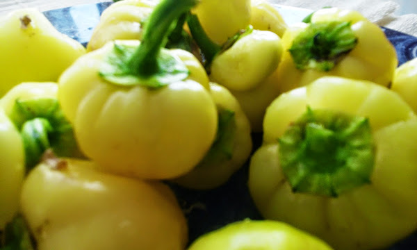 Estos pimientos amarillos son carnosos y de un sabor dulzón y suave exquisito. Los he preparado rellenos de arroz y para tomar templados. También los podemos tener preparados y un poco antes de servir, hacerlos en muy poco tiempo en el horno, ya que así quedan más jugosos.