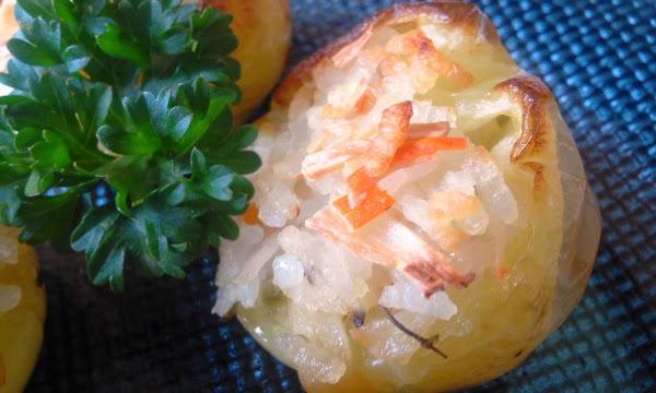 Pon aceite a calentar en el fondo de una cacerola y sofríe los ajos laminados. Añade el arroz escurrido, los palitos picados muy pequeños, perejil picado y pimienta. Remueve y saltea unos segundos. Reserva y espera a que se enfríe un poco.