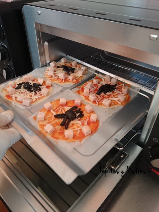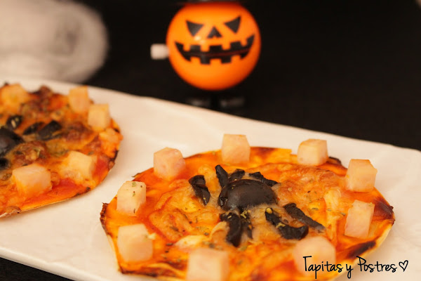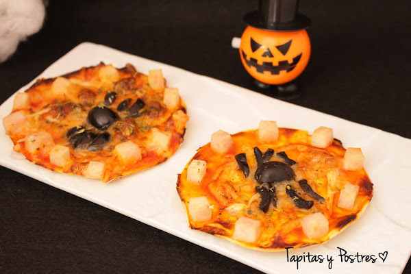 Bueno, pues eso, dada la cercanía de Halloween hoy me he lanzado a la aventura y con ayuda de mi compi Susana nos hemos embarcados en preparar estas mini pizzas que a ellos les han encantado.