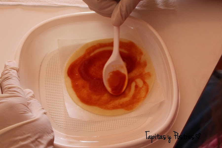 No tengo muchas fotos del proceso, pero seguro que no os hacen falta. Extendemos el tomate.
