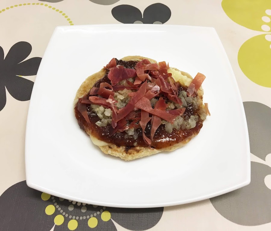 - Pon un par de cucharadas de la mermelada de higo sobre la mozzarella.