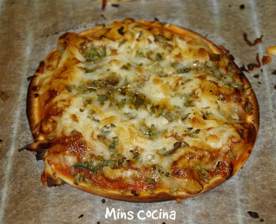 - Ahora toca una capa de mozzarella rallada, los toppings que queramos y orégano espolvoreado para terminar. Metemos al horno en la opción ventilador con grill o solo grill y dejamos unos minutos hasta que veamos tanto la masa como la mozarrella doradas. Entonces ya están listas para comer.