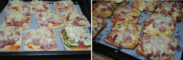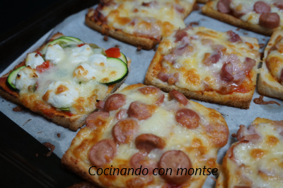 Tuvieron mucho éxito estas mini pizzas, se pueden hacer con lo que os guste. Como veis en la foto hice una de verduras para mi, estaba buenísima y se prepara en poco tiempo, queda el pan muy tostadito y rico.