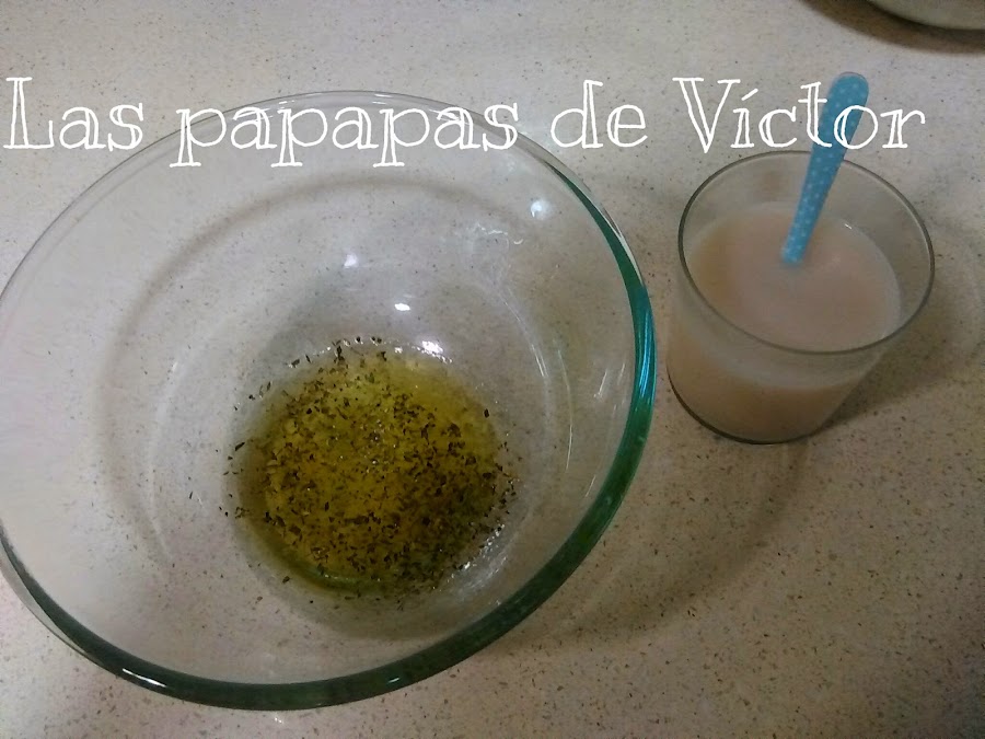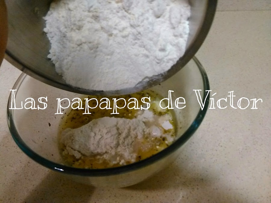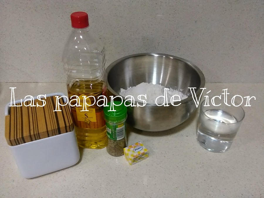 En un bol alto poner el aceite, orégano, sal a continuación en un vaso disolver la levadura en agua tibia e incorporarla al bol
