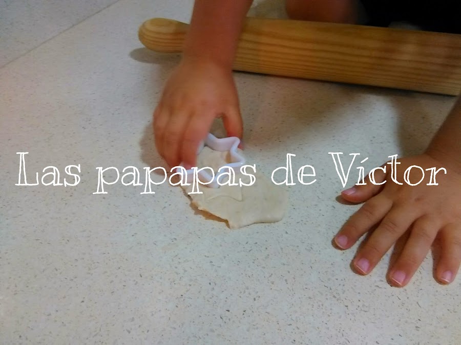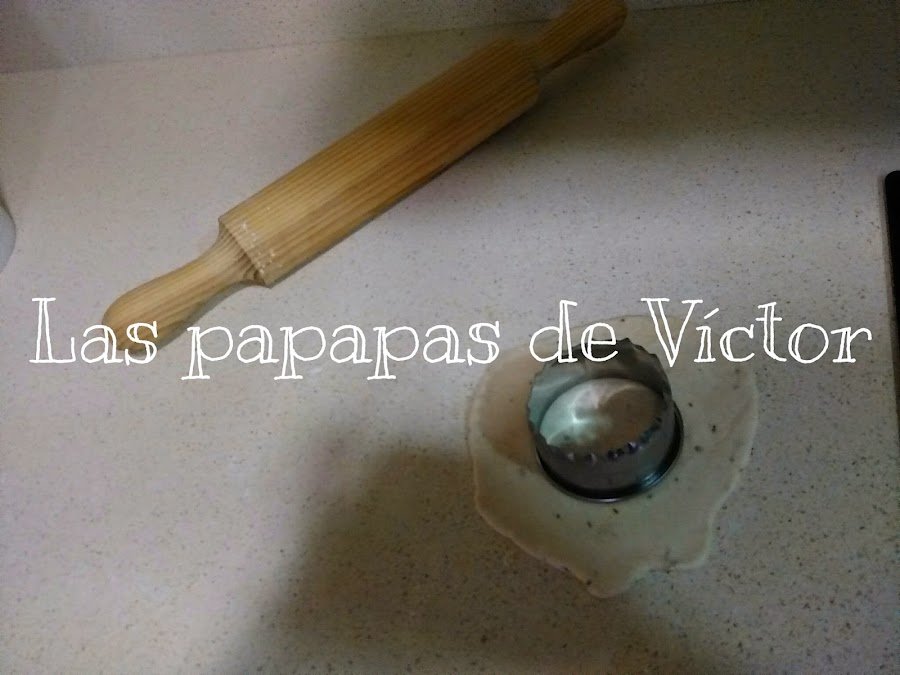 Ahora es hora de coger porciones de masa e irla estirando con un rodillo y poner después encima el cortapastas o sino un vaso y presionar para que se forme la redonda