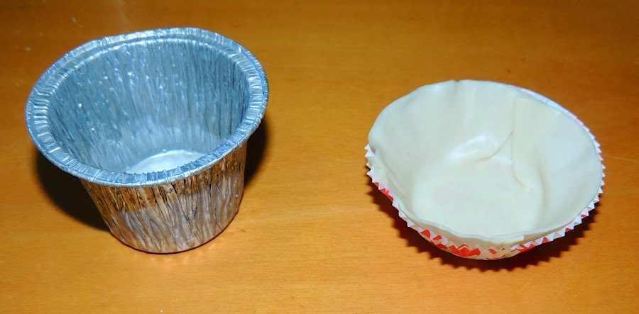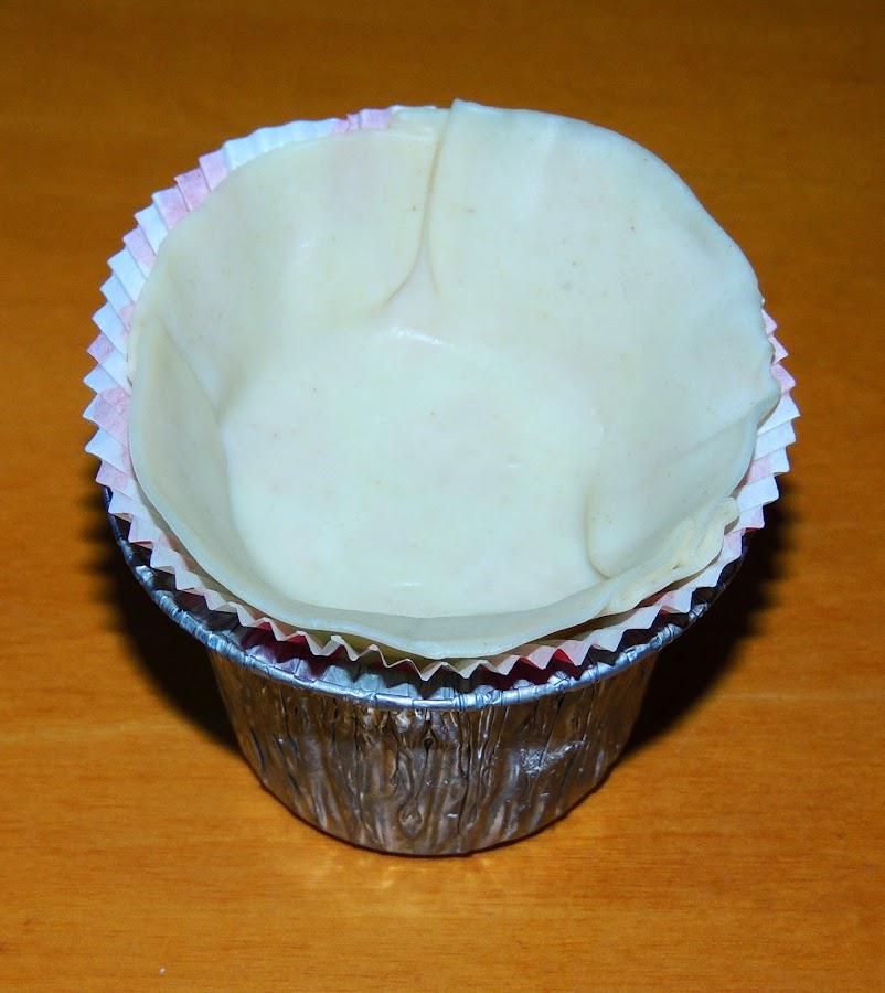 Se ponen las láminas de masa en un molde de papel de magdalenas.