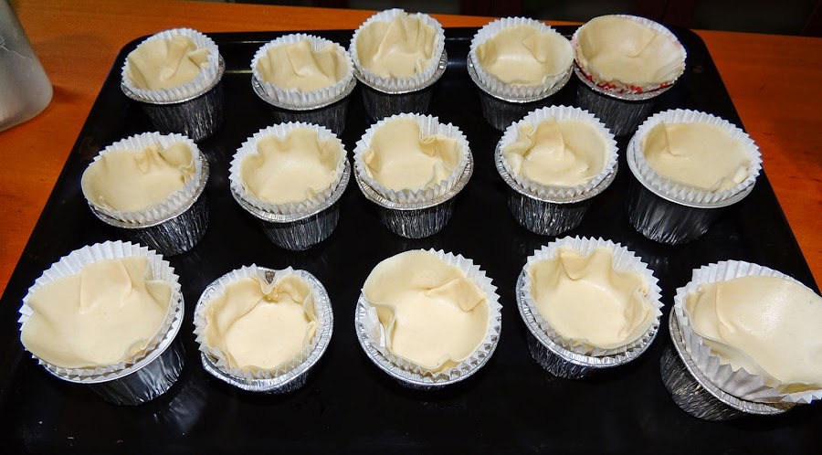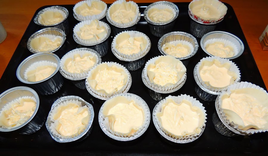 Se rellenan los moldes con una cucharada de la mezcla de huevo y nata (crema de leche).