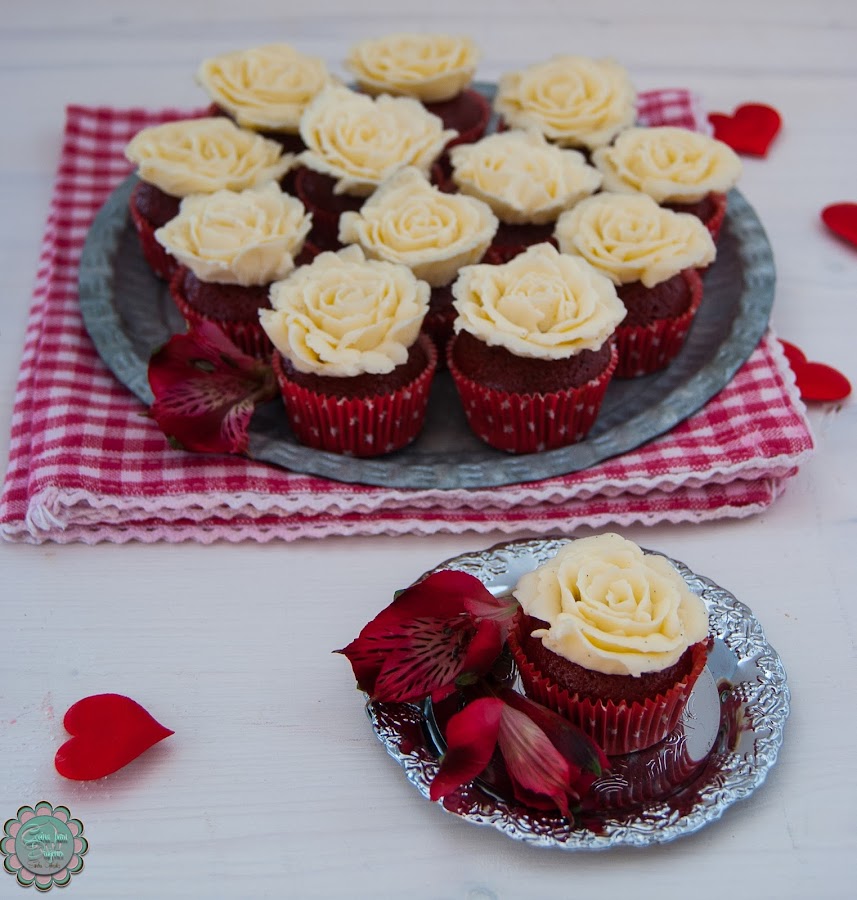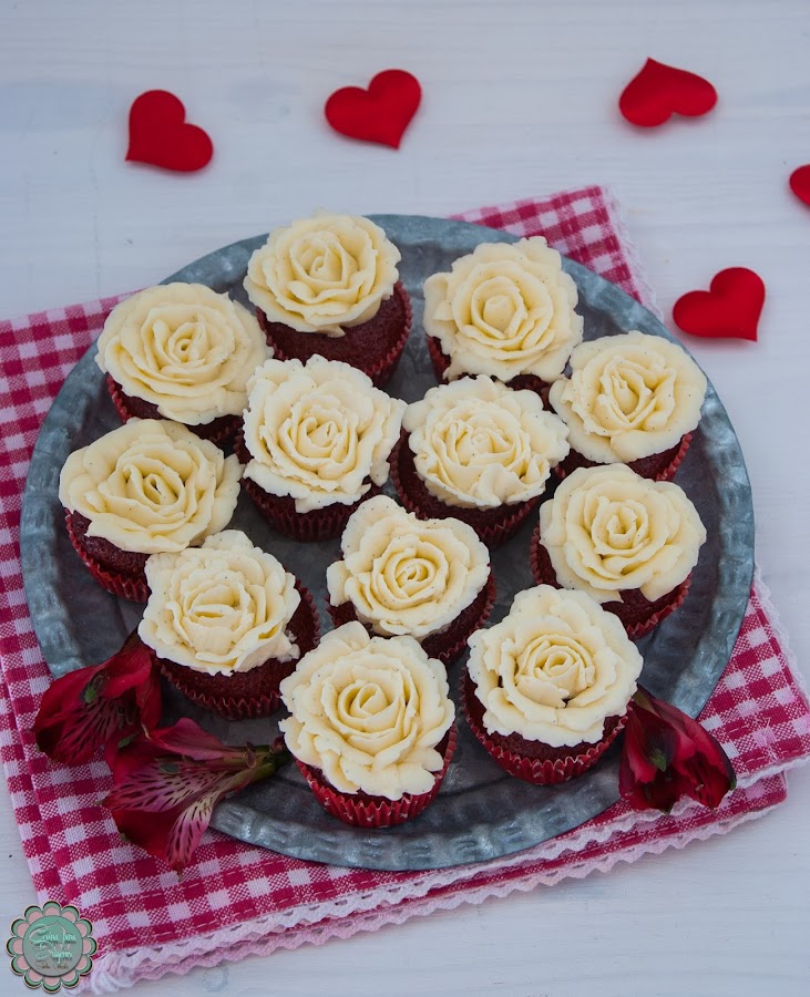 Para la decoración utilicé una boquilla de pétalo pequeña (la 114) e intenté hacer unas rosas que aprendí a hacer en uno de los cursos de la Tallerería con Belén, de Cupcakes a Gogó. Si os interesa hacerlas podéis encontrar tutoriales en la red, como este, por ejemplo. Sin embargo, podéis decorarlos de miles de maneras, vosotros mandáis.