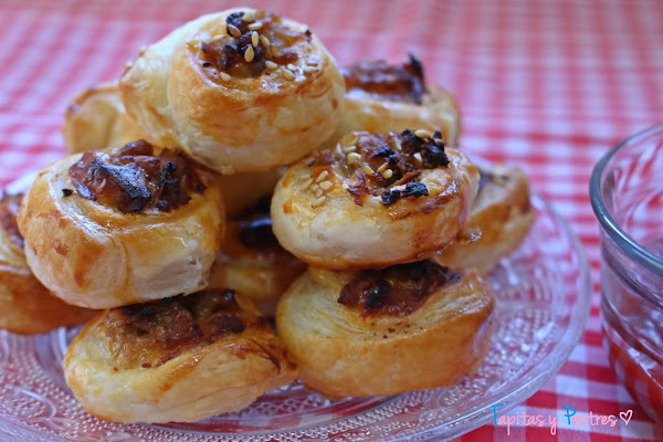 Sencillo, rápido y la mar de rico. Me he inspirado en una receta que vi en la página de La Masía. Aunque allí los rollitos eran mucho mas grandes, yo preferí hacerlo mini para que sirvieran de picoteo.