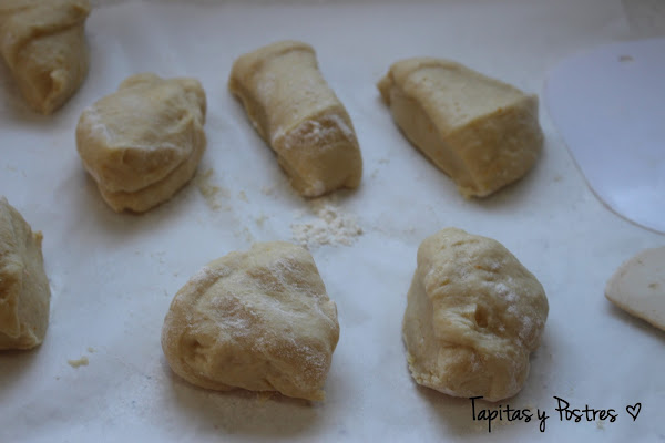 Sacamos, amasamos un poco y hacemos ocho partes, mas o menos iguales.