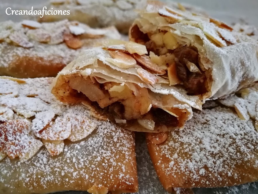 Estos mini strudel hechos con pera, almendra y masa filo, están tan ricos como los de la receta de apfelstrudel o strudel de manzana con masa casera que tenéis en el bolg. Obviamente en este caso mucho mas fácil ya que la masa no la tenemos que hacer y el poner la pera y las almendras es otra opcional igual de rica que en el strudel de manzana. Con las cantidades del relleno salen unos 6 mini strudel, pero os sobrara masa filo así que o podéis doblar las cantidades o utilizar la masa para rellenarla con otra cosa. Empezamos.