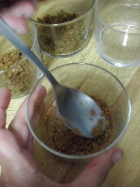 Ponemos en el fondo de los recipientes en los que serviremos nuestra tartita y presionaremos.