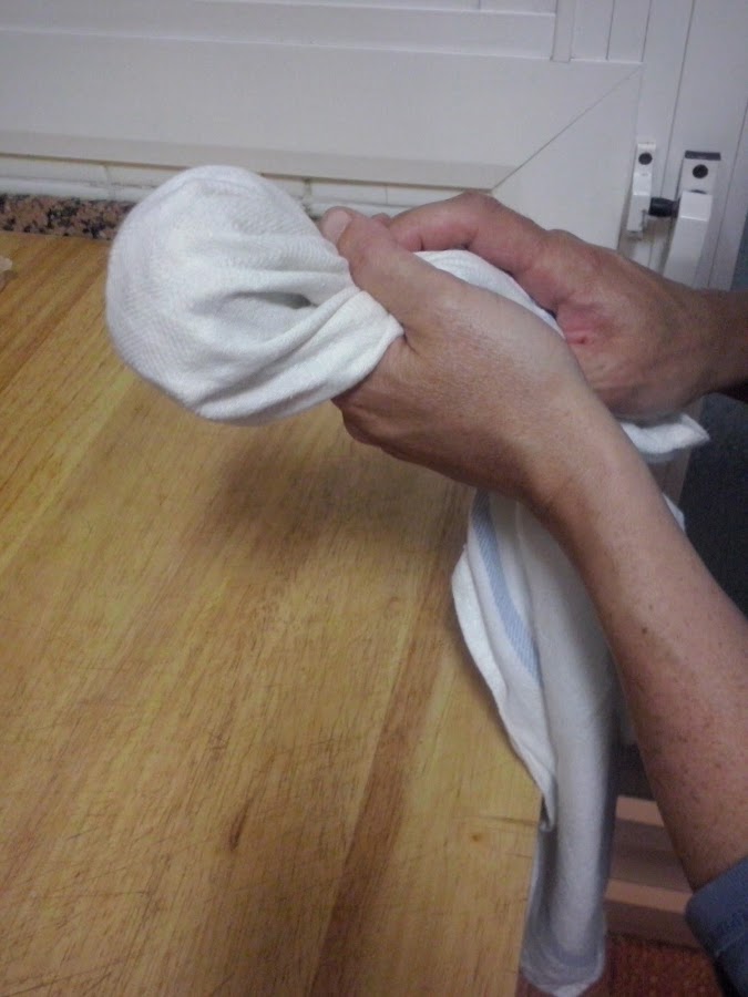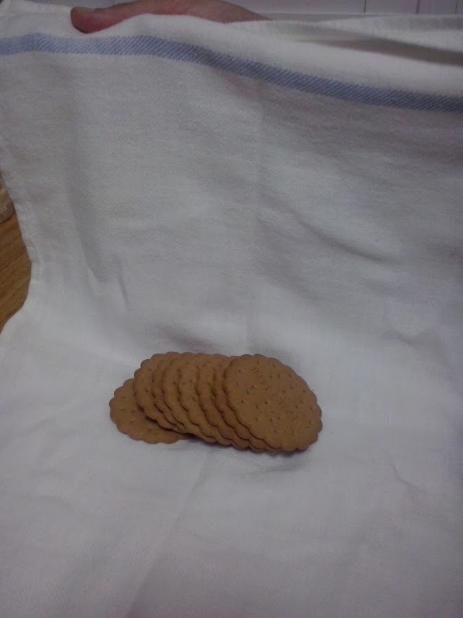 En primer lugar trituramos las galletas. Yo en esta ocasión las he envuelto en un paño limpio y golpeado hasta obtener unos grumos no demasiado finos.