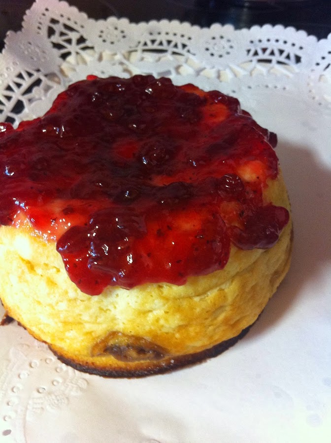 Luego la decoré con mermelada de arandanos rojos del Ikea y quedo espectacular.......