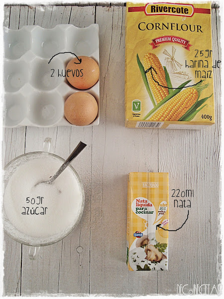 Por otro lado realizamos una crema pastelera introduciendo todos los ingredientes en la thermomix (huevo, azúcar y harina de maíz) y programando a 90 grados por 7 minutos velocidad 3. Montamos la nata montada (crema de leche) a parte