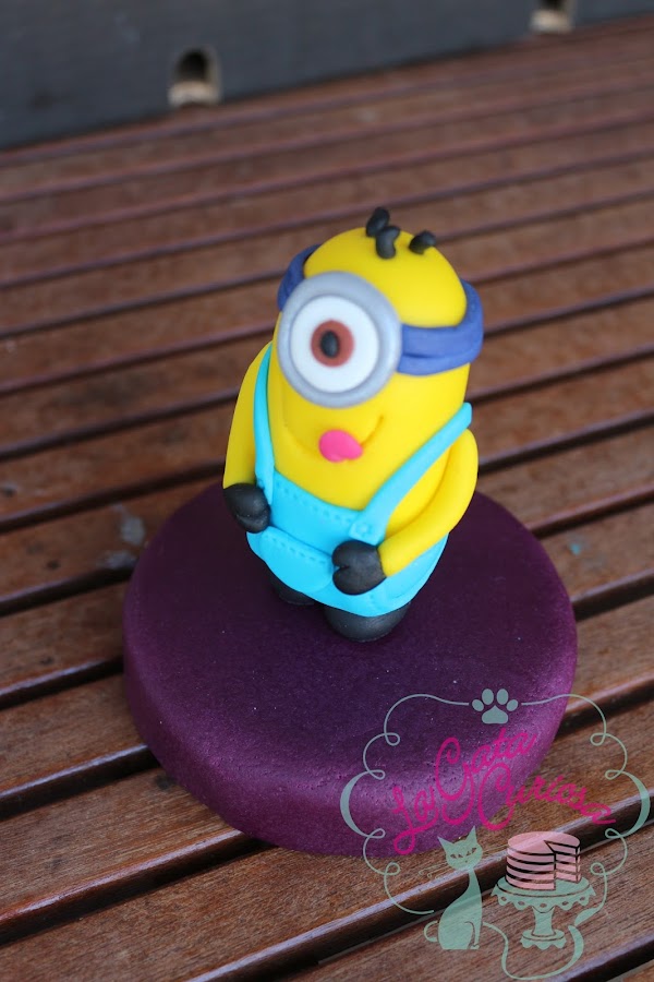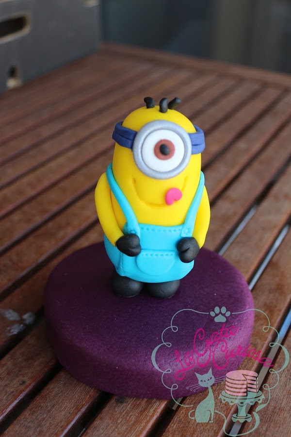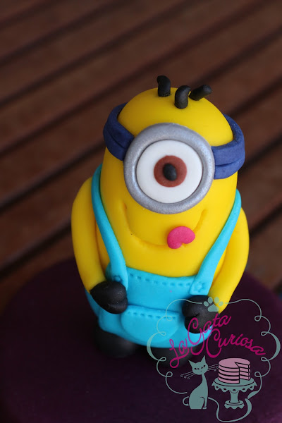En realidad no es una tarta, es un minion sobre una base en forma de tarta. Esta mini tarta acompañaba a la tarta de nacimiento de Aida y era para que su hermanito no se sintiese como un principe destronado.