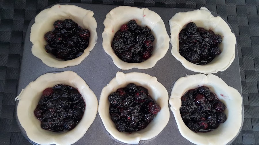 Seguidamente rellenaremos las tartas con las moras que teníamos reservadas.
