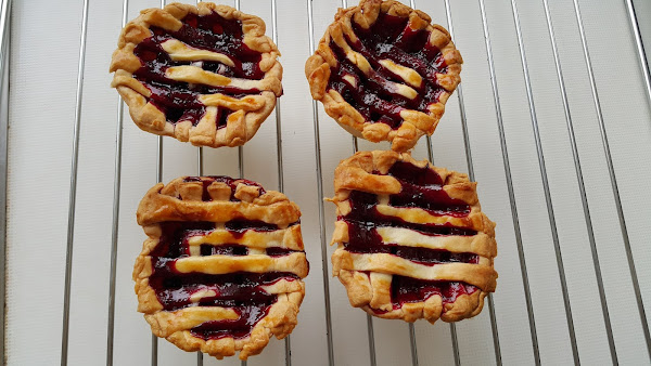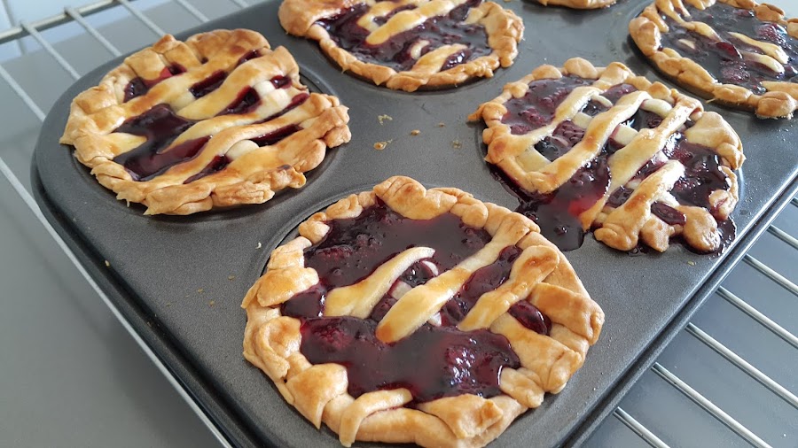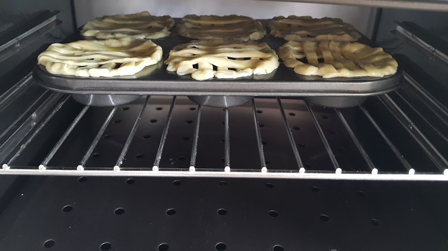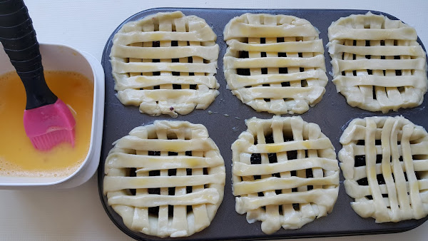 Cubriremos las tartas con un enrejado a base de tiras de masa.