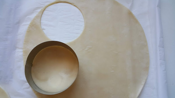 Para la base de la tarta utilizaremos masa quebrada, la cuál cortaremos con un molde para alimentos.