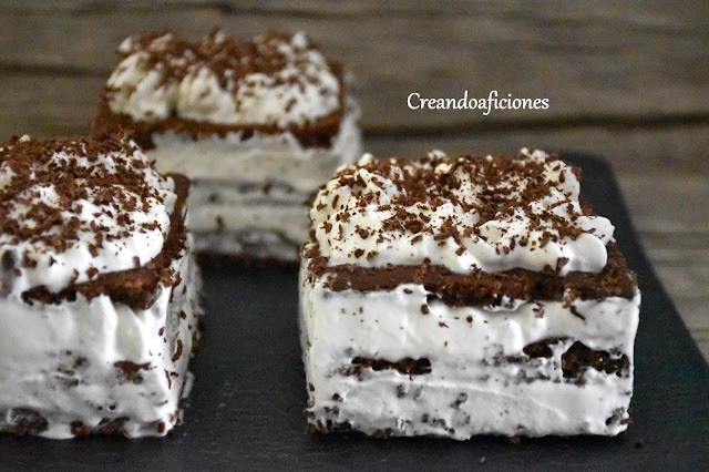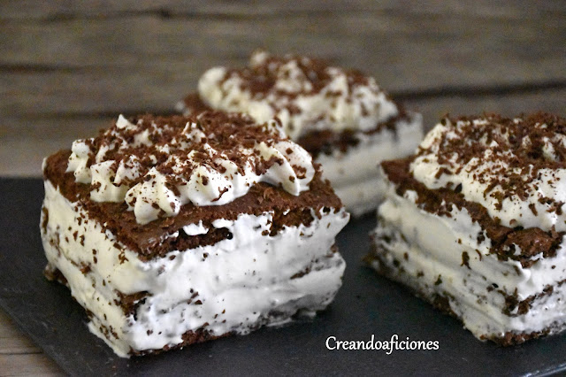 Vamos a preparar estas riquísimas mini tartas de nata (crema de leche) y chocolate. Son muy fáciles de hacer y la pinta que tienen pues ya las veis, muy apetecibles. Para hacer estas mini tartas podéis utilizar 2 ó 3 trozos de bizcocho, por cada una de ellas y os saldrán 3 ó 6 mini tartas dependiendo como las hagáis. Empezamos.