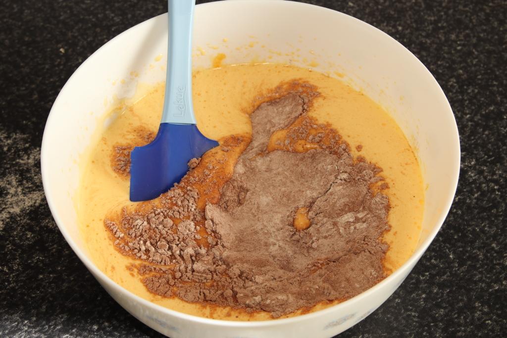 Tamizamos la harina junto con el cacao y la sal, reservamos.