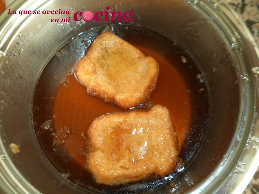 En el momento en el que estén bien doradas por todos lados las sacaremos y las iremos enmelando. Para ello ya habremos apartado del fuego la miel que pusimos a calentar pero debemos asegurarnos que aún sigue caliente para que esté lo suficientemente "líquida".