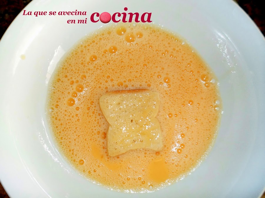 En otro plato batiremos los 4 huevos y comenzaremos a pasar las rebanadas por él.