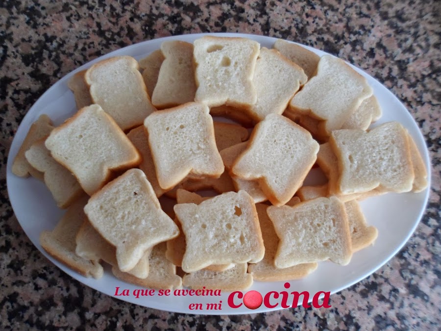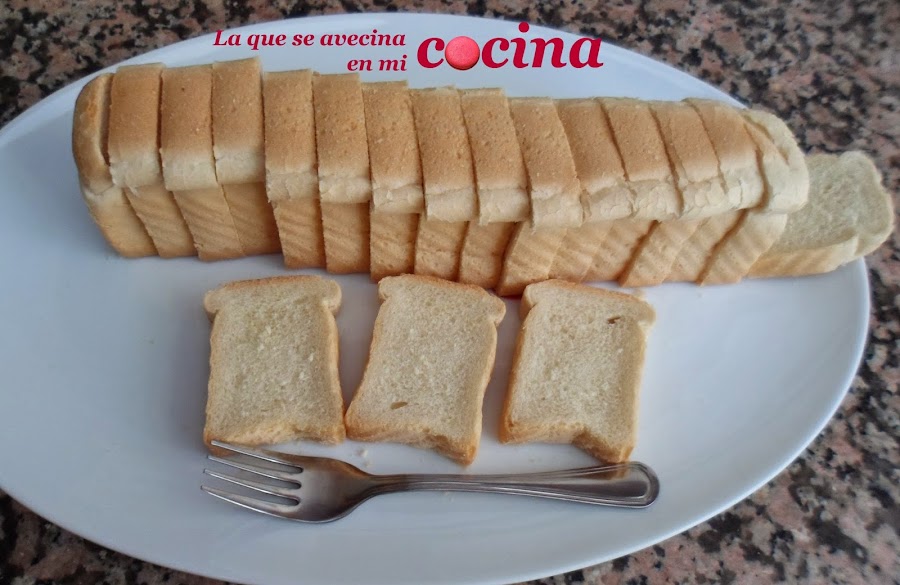 Si os decidís a hacer la receta con pan especial, en mi caso lo prefiero de rebanadas pequeñas o "mini" como yo las llamo. Me resulta más cómodo de comer en porciones pequeñas que en caso de que nos quedemos con ganas podemos repetir, que en porciones grandes las cuales, a mí personalmente, pueden llegar a hartar demasiado.