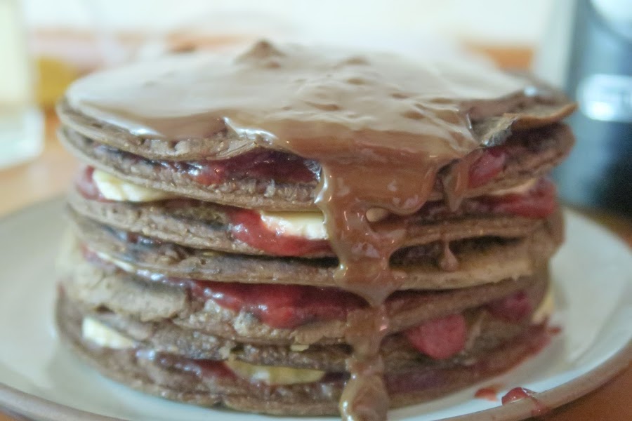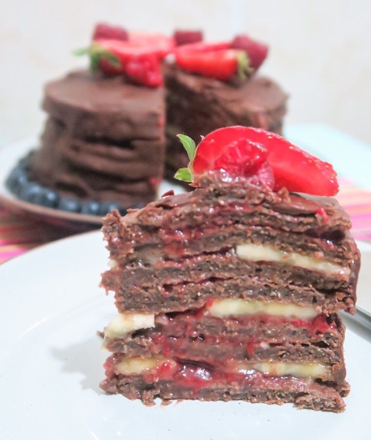 Dejar el último panqueque sin mermelada, ya que tendrá la cobertura de chocolate.