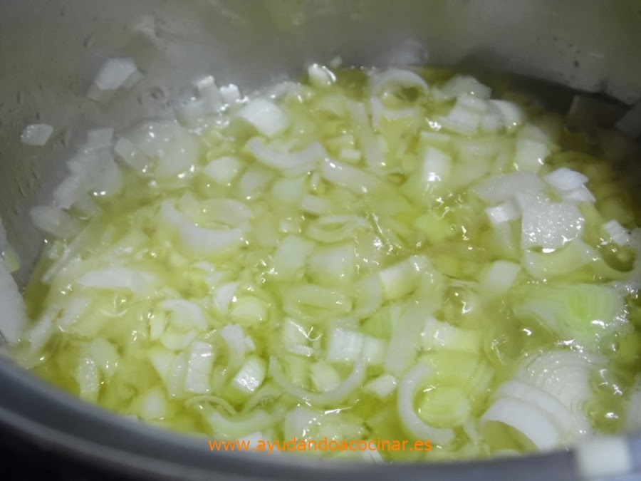 Rehogar el puerro y la cebolla en el aceite que vamos hacer la bechamel