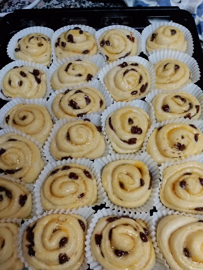 MINICARACOLAS CON PEPITAS DE CHOCOLATE Y MERENGUE SUIZO