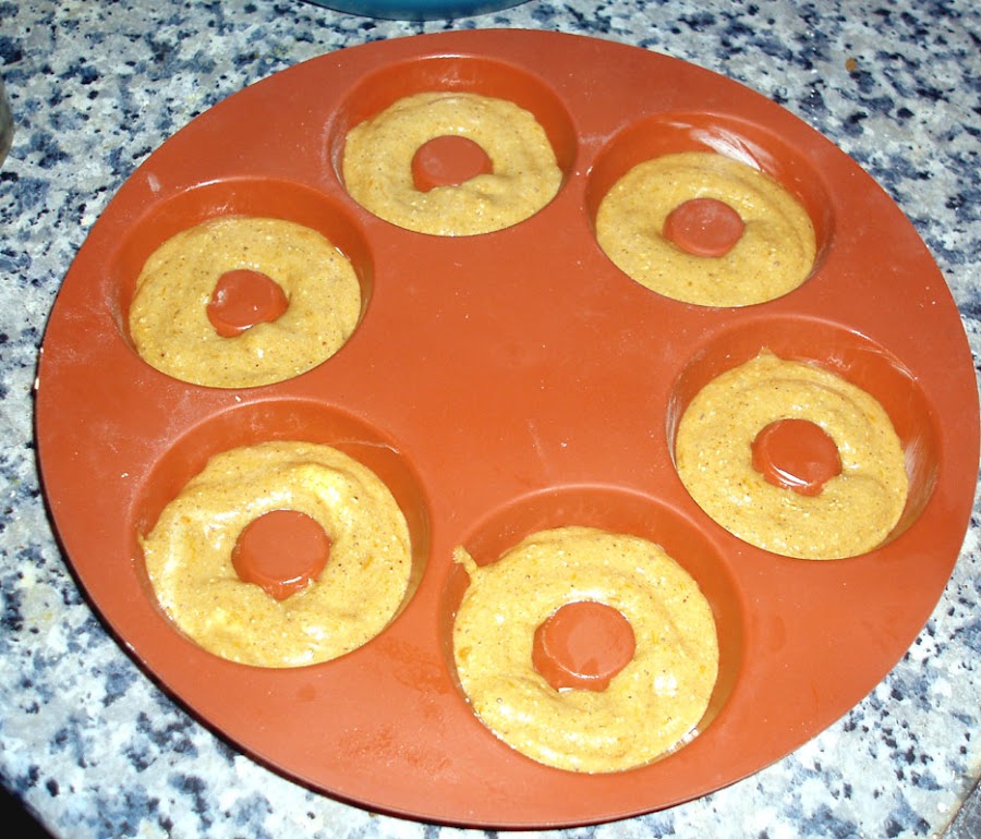 Buscando una receta saludable con calabaza encontré una que me encantó, es de la bloguera "Lolita la pastelera" su receta son unas magdalenas de calabaza, y yo las he convertido en unos minis donuts saludables con avena.