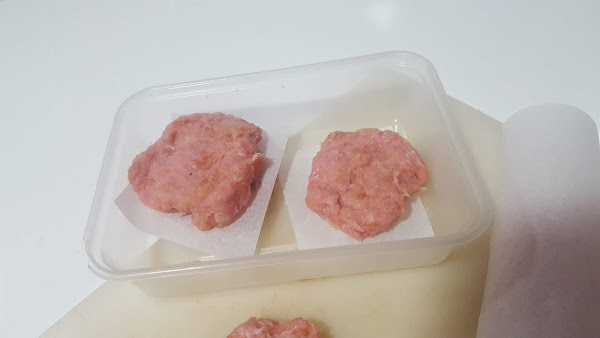 4.- Si no las vais a cocinar inmediatamente, cortar papel de hornear a cuadrados para apilarlas en el recipiente donde las vayáis a almacenar. Es para que no se peguen y las podáis sacar sin romperlas.