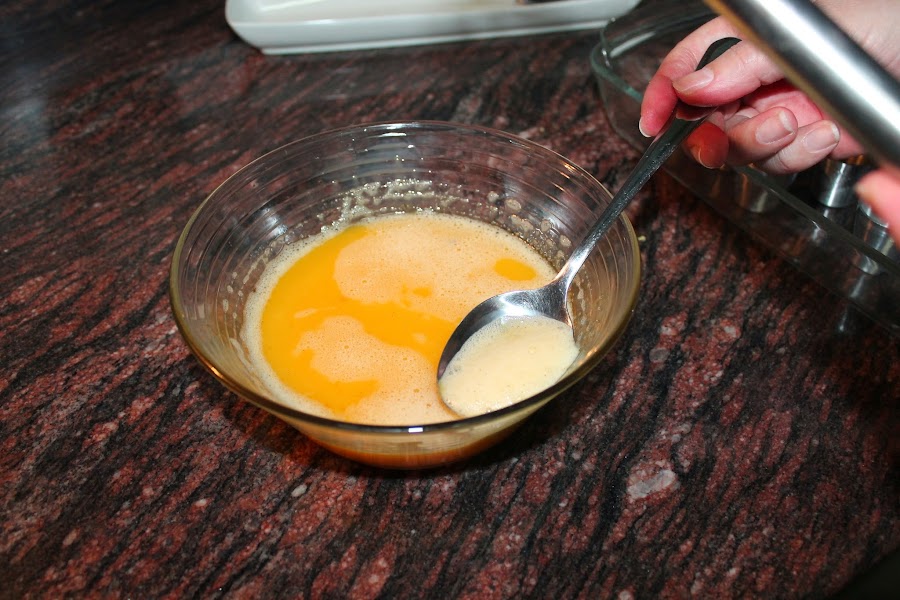 Una vez tengamos las yemas bien batidas con ayuda de una cuchara quitaremos la espuma que ha creado por encima.