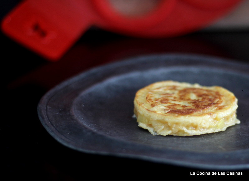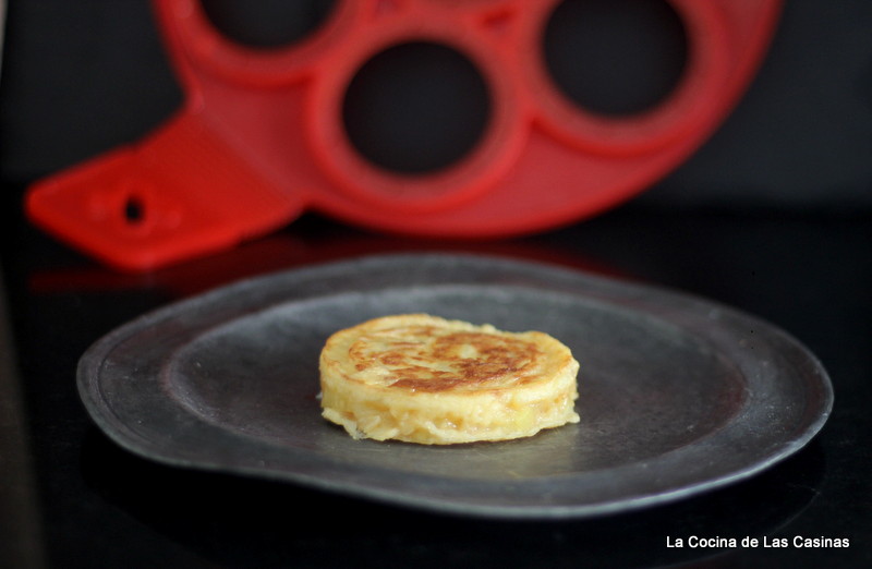 Hace unos días vi este molde para hacer blinis y crêpes, se me ocurrió que sería un molde ideal para hacer mini tortillas de patata, !!!!síiiii!!!! me lo compré, no lo pude evitar. byJose hizo su requetebuena preparación de tortilla que te enseñé aquí y probamos si podía funcionar en este molde.