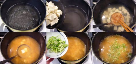 4. Remueve suavemente la sopa. Apaga el fuego y añade la cebolleta. (Acuérdate de no hervir la sopa después de que hayas puesto el miso dentro.)