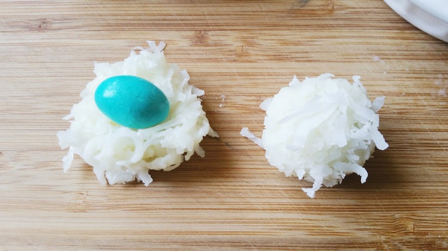 Una vez trancurridos los 25 minutos, saca el coco del refrigerador y forma pequeñas bolitas, cubriendo los M&Ms®,y pasa las bolitas por un poco de coco rallado seco. Vuelve a refrigerar otros 15 minutos. Listo, ya puedes disfrutar un delicioso postre de pascua.