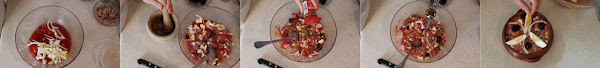 Machacamos el ajo en un mortero y se lo añadimos, le ponemos sal al gusto , una pizca de cominos molidos, vinagre al gusto (opcional) y un chorreón de aceite de oliva.